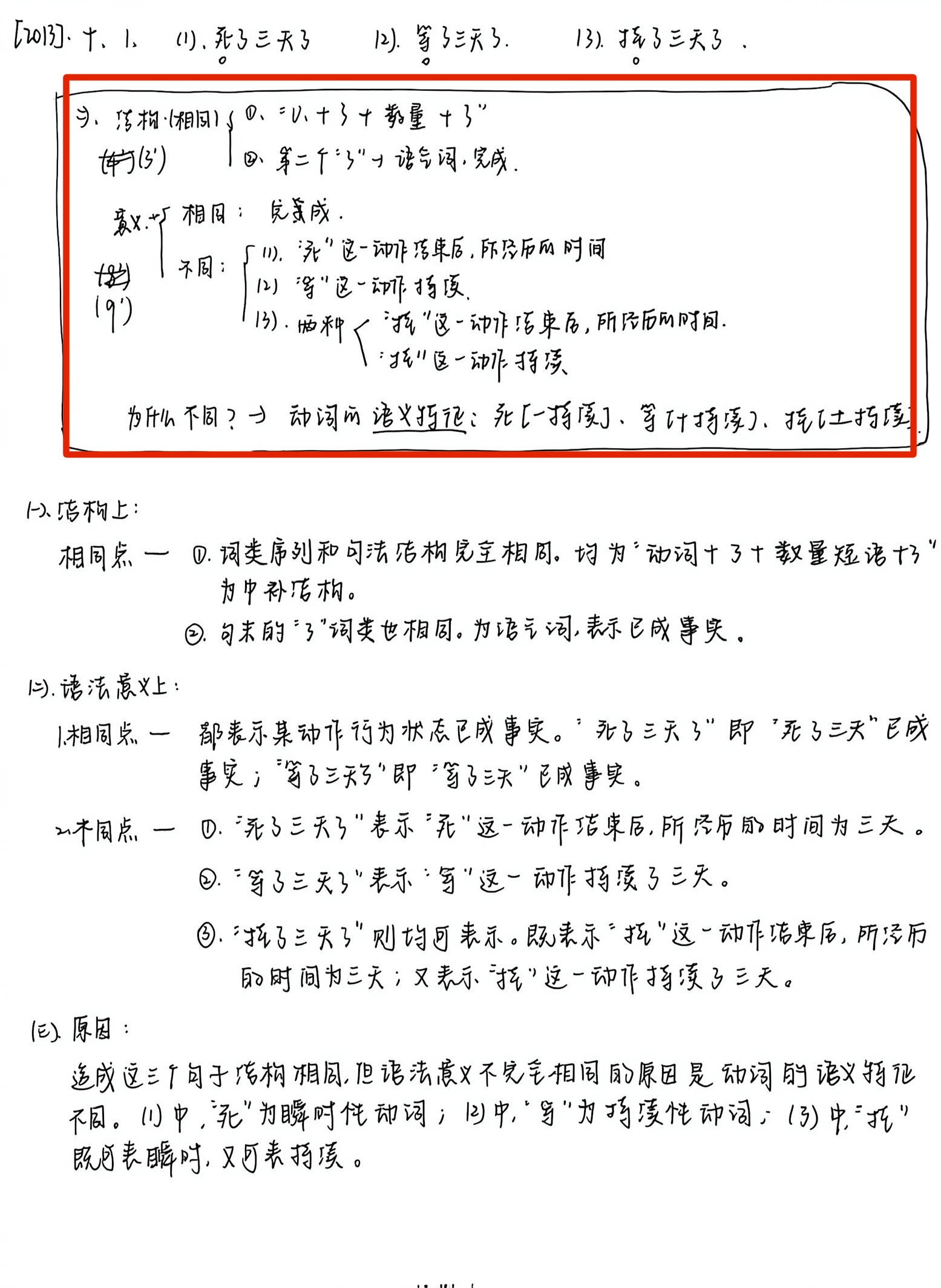 1.看《现代汉语语法研究教程》第二到七节。先看B站视频课,再看教材。看教材的时候详细做笔记,整理每一章的例子和分析方法。建议把“方法论”类的笔记单独整理成一个板块,后期冲刺阶段重点回顾。